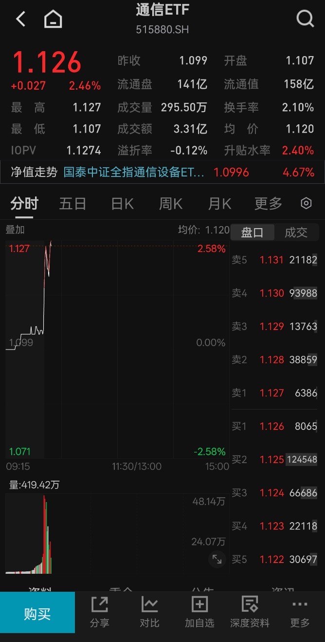 通信ETF(515880)高度聚焦光模块、服务器等算力核心硬件,规模与流动性领先,是投资者一键配置AI算力基础设施板块的高效工具。