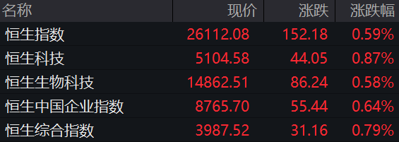 香港恒生指数开盘涨0.59%,恒生科技指数涨0.87%。
