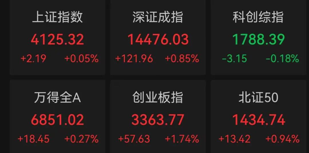 截至上午收盘,上证指数上涨0.05%,深证成指上涨0.85%,创业板指上涨1.74%,科创综指下跌0.18%。