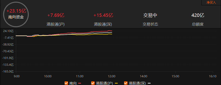 南向资金半日净买入23.15亿港元。
