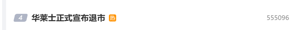 3月11日,“华莱士正式宣布退市”的话题冲上微博热搜榜。截至发稿,该话题排在热搜榜第四位,且关注度持续提升。