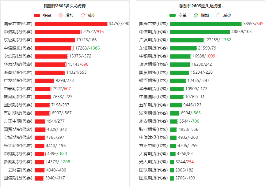 碳酸锂龙虎榜 | 主力合约减仓下行 多空双方均呈退场态势