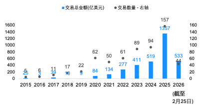 2025年是中国创新药海外BD(Business Development)爆发式增长的一年。医药魔方数据显示,2025年中国创新药对外授权交易达157起,交易总金额达1357亿元,较2024年大幅增长。2026年这一势头仍在延续。