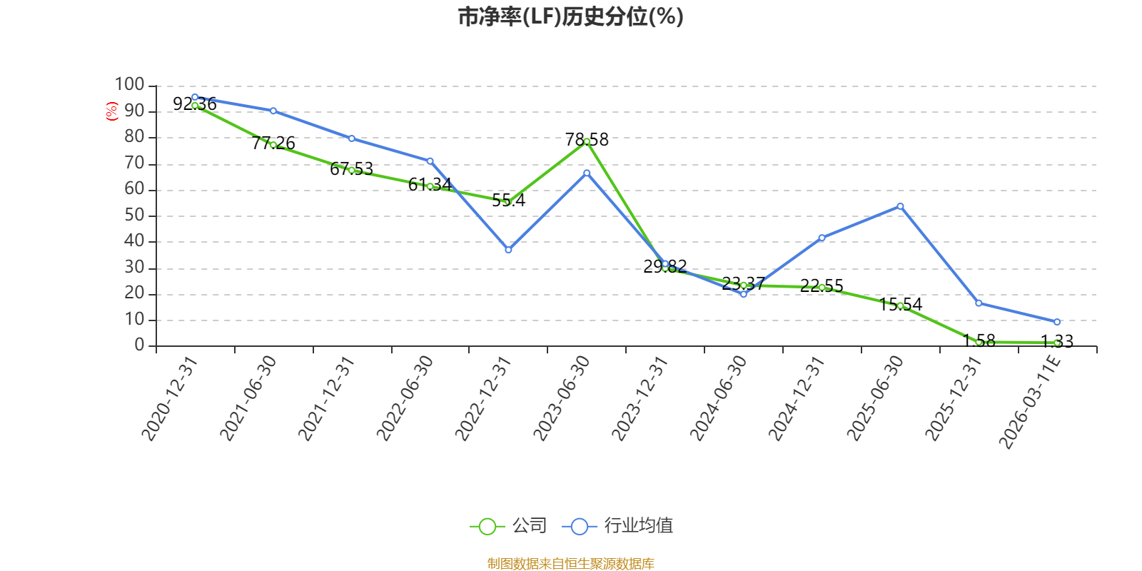 市盈率、市净率为负时,不显示当期分位数,会导致折线图中断。
