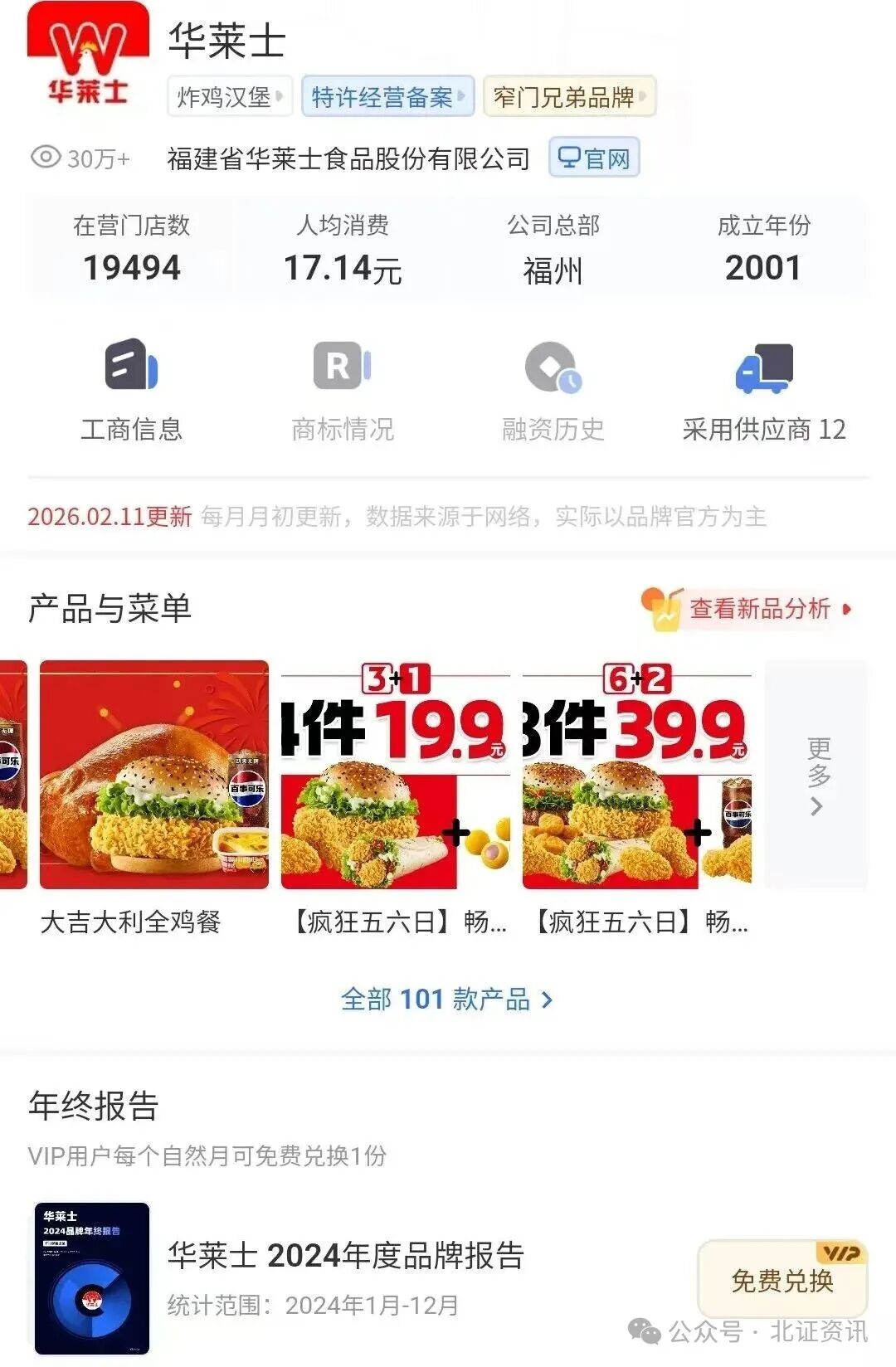 根据窄门餐眼,华莱士的人均消费约17元,截至2026年3月11日,其在全国拥有门店超1.9万家,在炸鸡汉堡品类里,其门店数量位居第一。