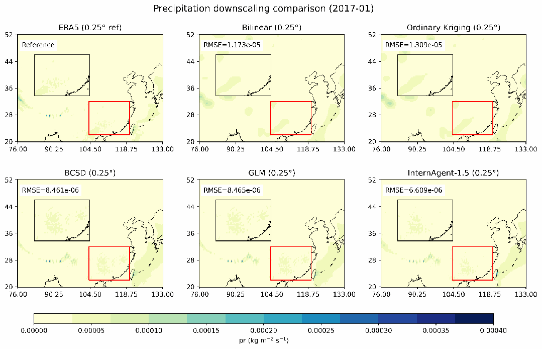 “书生”科学发现平台自主完成气候数据筛选与建模工具设计,精准再现观测数据的空间分布和局部降水极值。