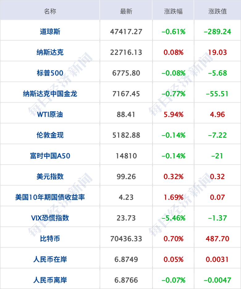 美股三大指数收盘涨跌不一,道指跌0.61%,纳指涨0.08%,标普500指数跌0.08%;甲骨文涨超9%,存储概念股上涨,闪迪涨近6%,美光科技涨超3%;黄金股走低,哈莫尼黄金跌近11%,科尔黛伦矿业跌超4%,赫克拉矿业跌超3%。中概股涨跌不一,纳斯达克中国金龙指数跌0.77%,腾讯音乐、爱奇艺跌超4%,理想汽车、小鹏汽车涨超2%,贝壳、禾赛科技涨逾1%。