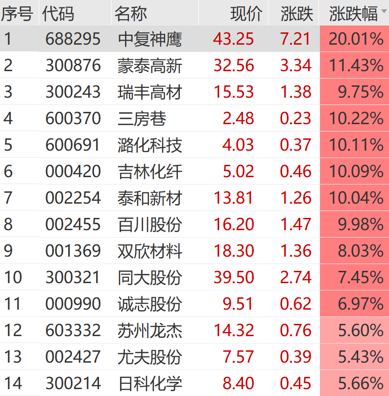 3月12日,A股基础化工板块盘初活跃,化学纤维概念股走强,吉林化纤、泰和新材等涨停。