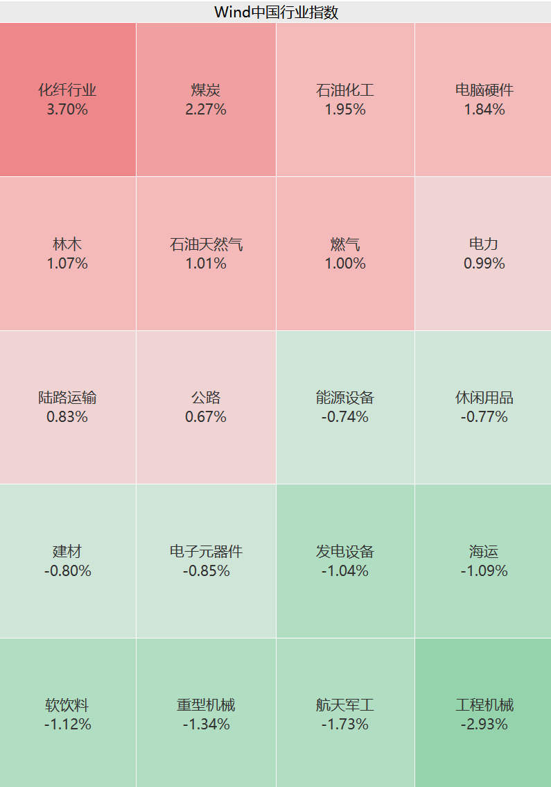 盘面上,化纤、煤炭、石油化工、电力等板块走强,PEEK材料、稳定币、火电等概念股活跃;航天军工、工程机械、海运等板块不振。