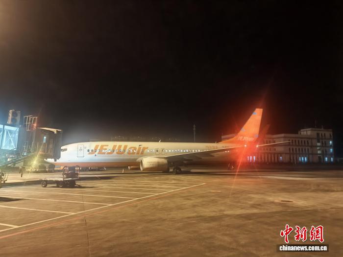 图为3月11日23点53分,韩国济州航空执飞的7C8611国际航班落地桂林机场。徐龙摄