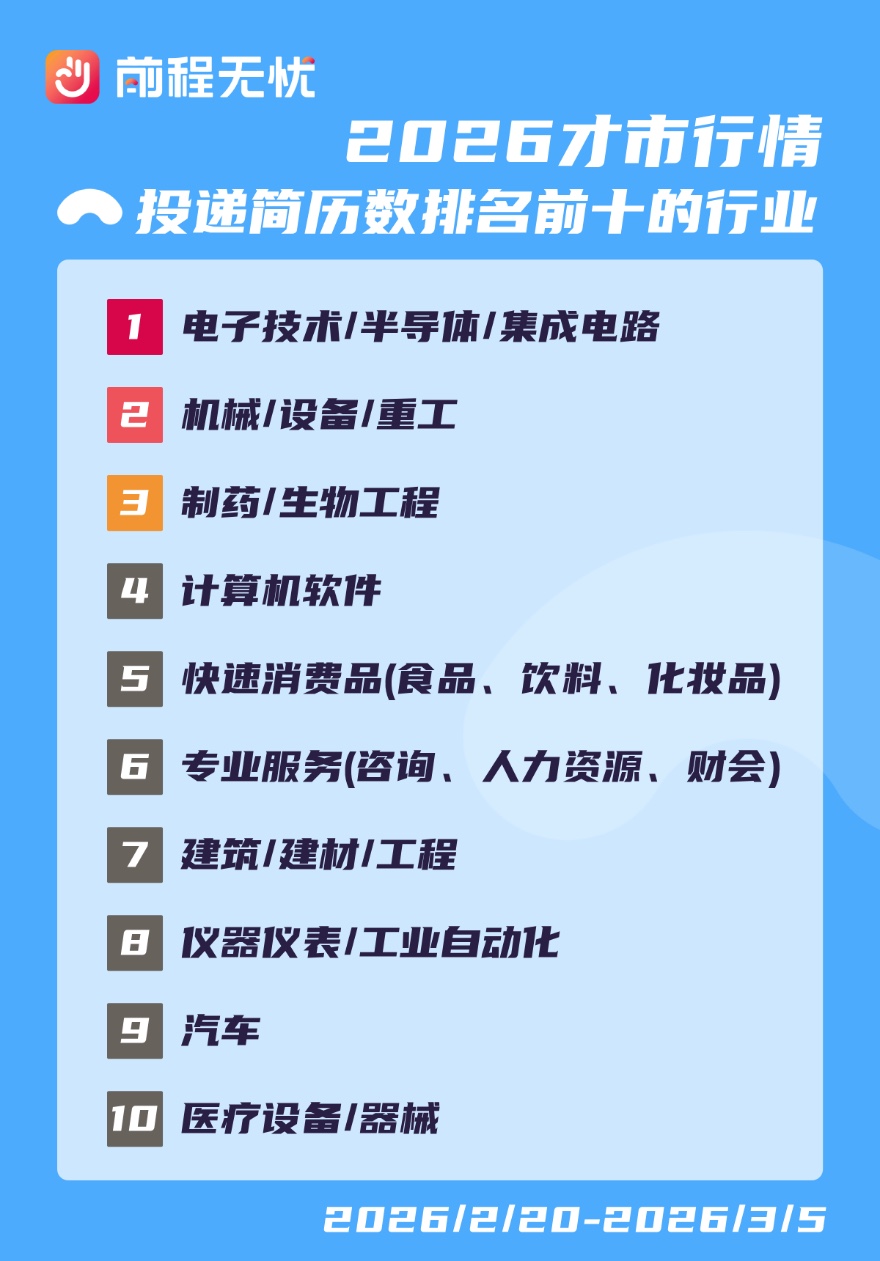 3月12日消息,中国人力资源服务商前程无忧51job的平台观察数据显示,人才流动的重心已高度向国家重点发展的硬核科技和实体制造产业倾斜。