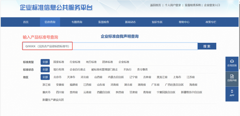 消费者可登录企业标准信息公共服务平台,输入标准号,查询企业标准。
