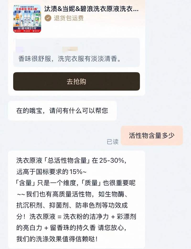 购买前可通过客服咨询产品有效活性物、去污力指标。