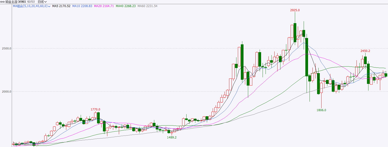 图为NYMEX铂期货主力合约走势
