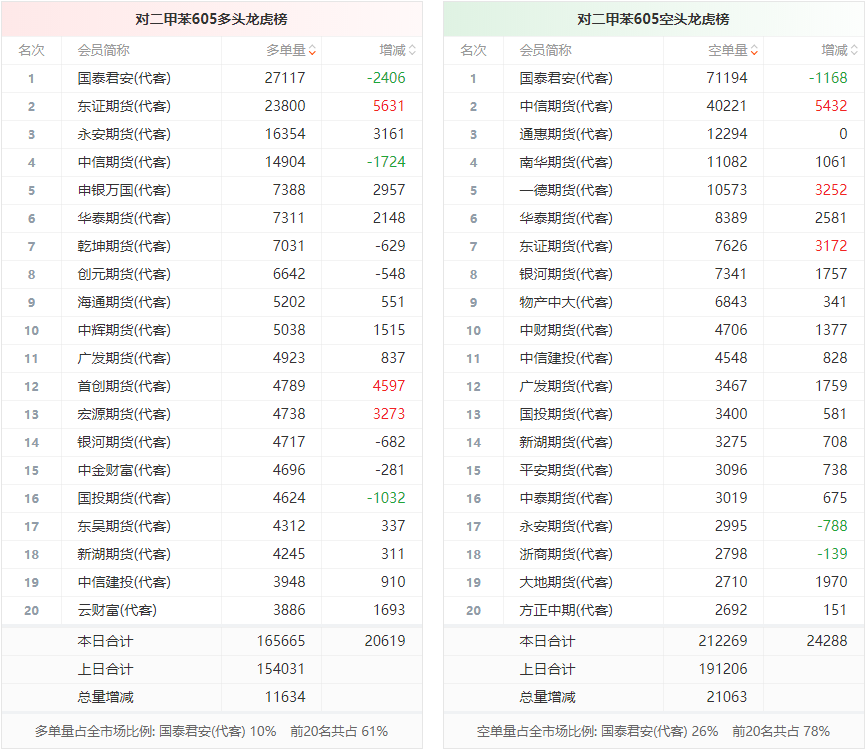 对二甲苯龙虎榜 | 主力合约增仓上行 多空双方均呈进场态势