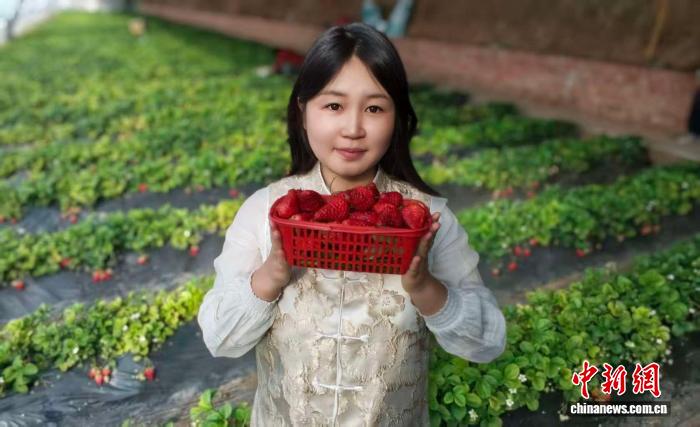中新网乌兰察布3月12日电题:内蒙古大棚经济春意浓:草莓蓝莓“双拼”上市富农家
