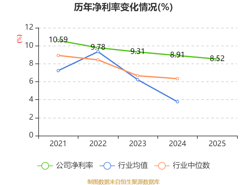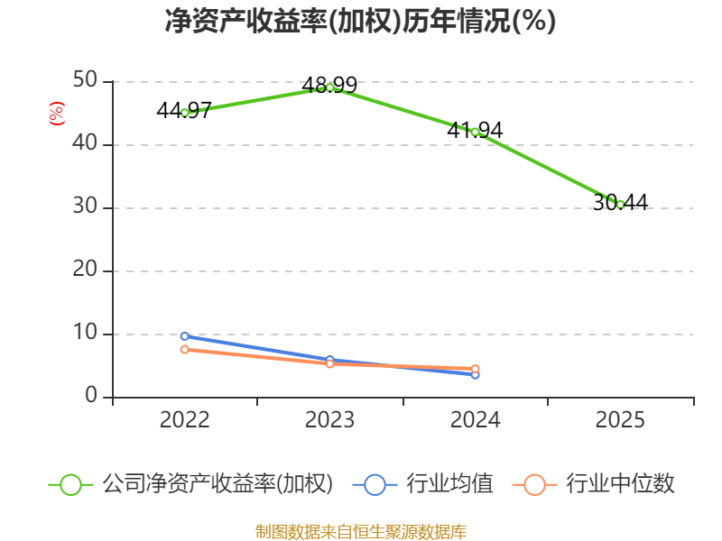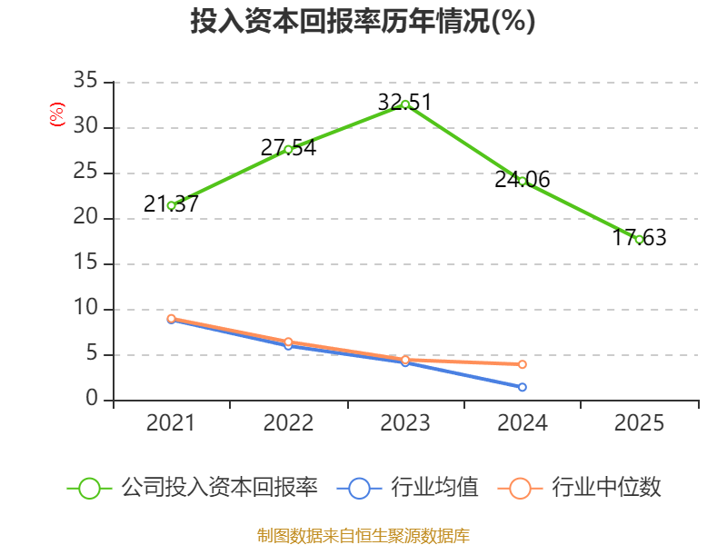 数据显示,2025年公司加权平均净资产收益率为30.44%,较上年同期下降11.5个百分点。公司2025年投入资本回报率为17.63%,较上年同期下降6.43个百分点。
