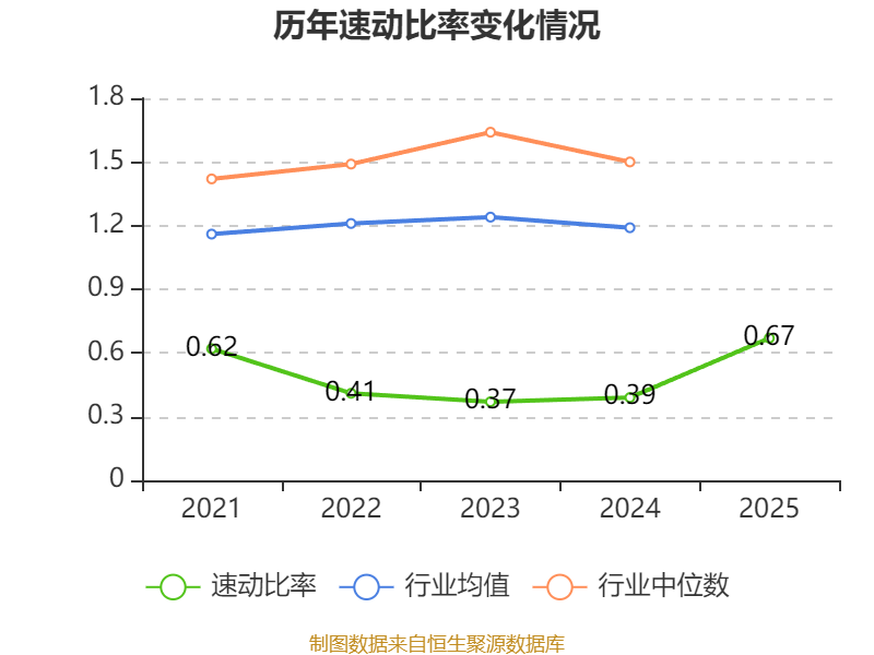2025年,公司流动比率为1.18,速动比率为0.67。
