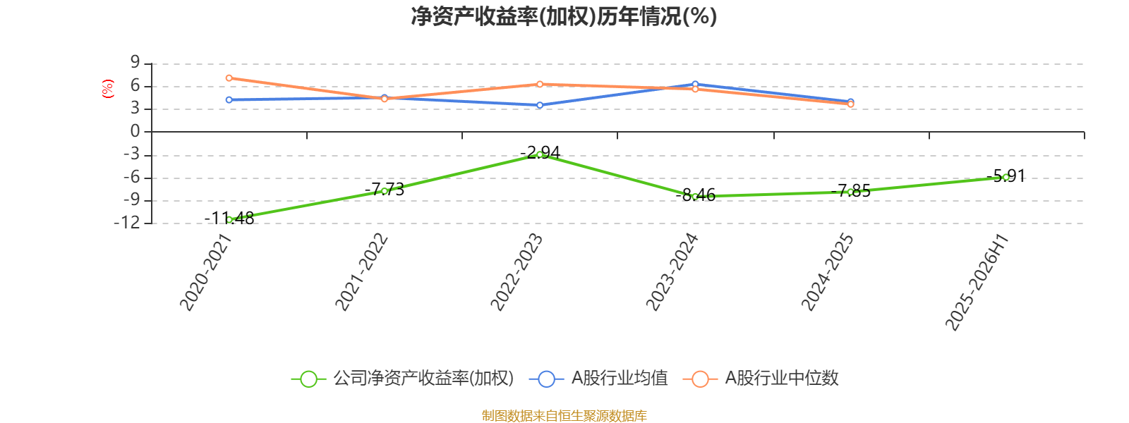 报告期内,公司平均净资产收益率为-5.91%,较上年同期下降2.22个百分点。