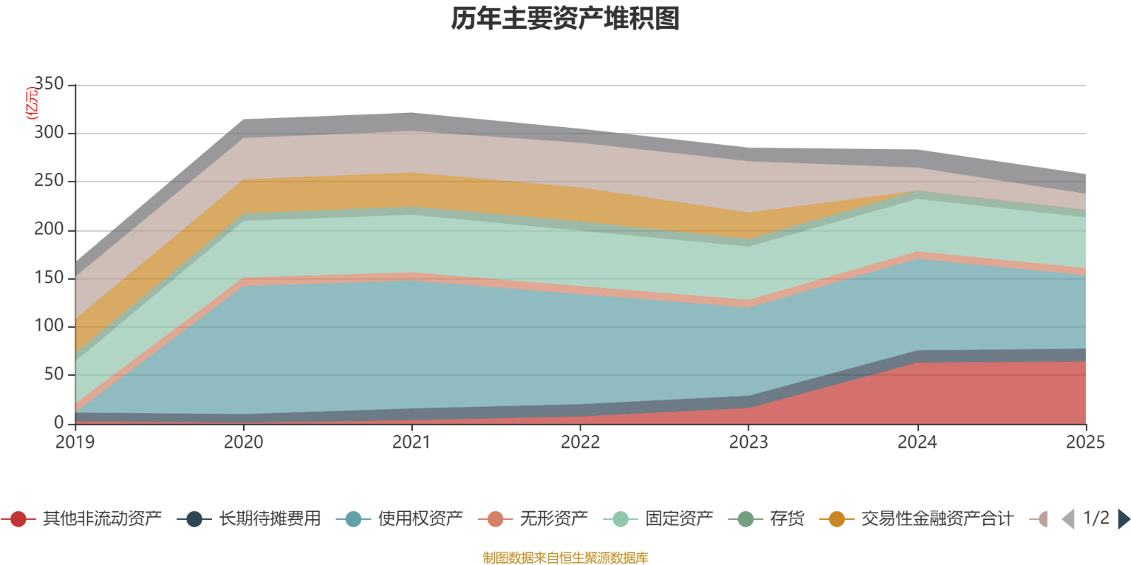 资产重大变化方面,截至2025年末,公司使用权资产较上年末减少19.83%,占公司总资产比重下降3.99个百分点;其他非流动资产较上年末增加1.99%,占公司总资产比重上升2.68个百分点;货币资金较上年末减少29.67%,占公司总资产比重下降1.92个百分点;固定资产较上年末减少3.22%,占公司总资产比重上升1.2个百分点。