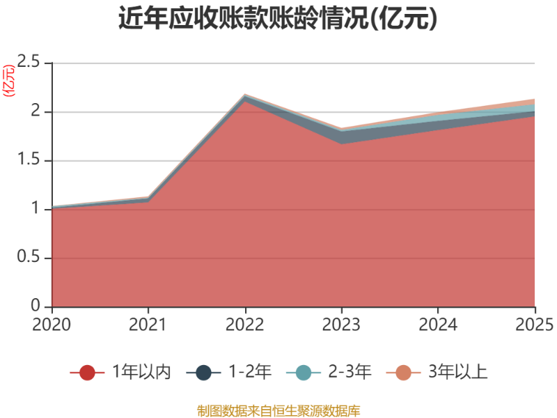 从应收账款账龄结构来看,截至2025年末,公司账龄在1年以内的应收账款余额为1.95亿元,较上年末增长1404.35万元,占应收账款总额比例为91.52%,较上年末上升0.71个百分点。