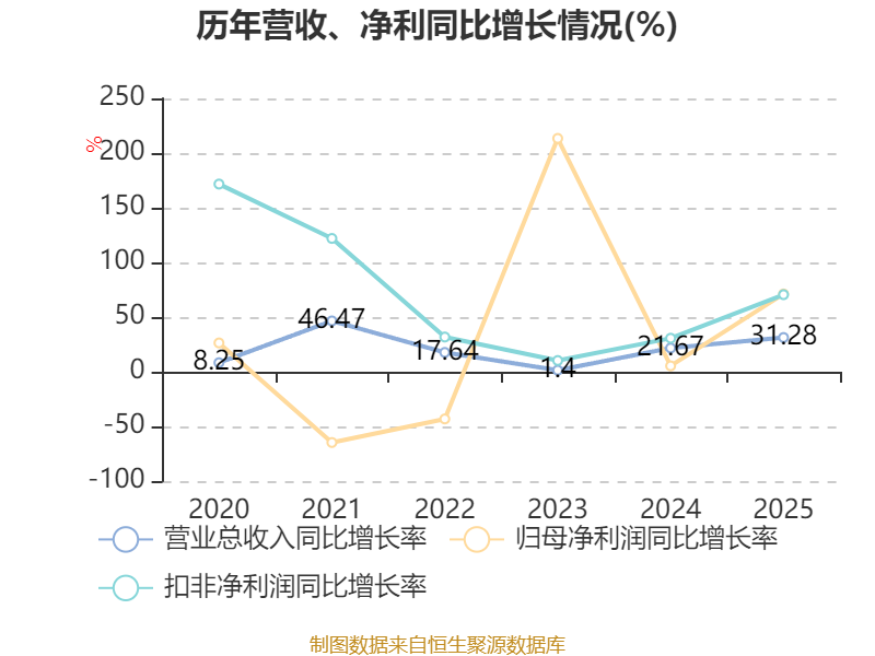 负债重大变化方面,截至2025年末,公司短期借款较上年末增加183.41%,占公司总资产比重上升3.71个百分点;长期借款较上年末减少54.54%,占公司总资产比重下降1.72个百分点;一年内到期的非流动负债较上年末增加151.56%,占公司总资产比重上升1.02个百分点;应付票据及应付账款较上年末增加32.25%,占公司总资产比重上升0.98个百分点。