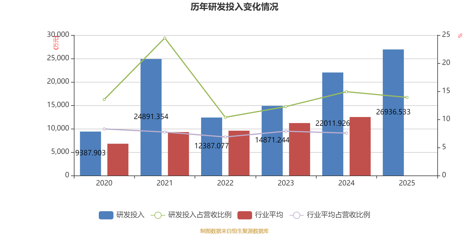 2025年全年,公司研发投入金额为2.69亿元,同比增长22.37%;研发投入占营业收入比例为13.91%,相比上年同期下降1.01个百分点。此外,公司全年研发投入资本化率为0。