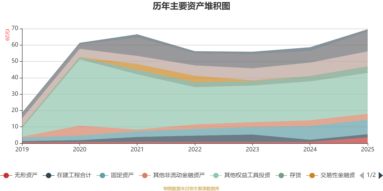 资产重大变化方面,截至2025年末,公司货币资金较上年末增加70.95%,占公司总资产比重上升5.32个百分点;其他权益工具投资较上年末增加4.68%,占公司总资产比重下降4.8个百分点;无形资产较上年末增加295.17%,占公司总资产比重上升3.55个百分点;固定资产较上年末增加6.48%,占公司总资产比重下降1.48个百分点。