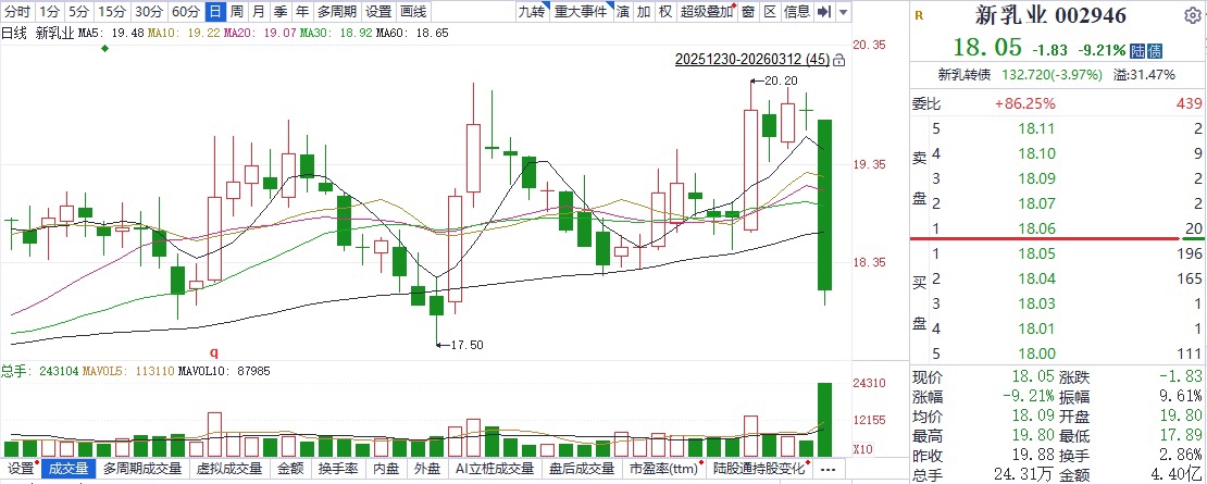 一边,雄心勃勃地谋划赴港上市,打造国际化资本平台;另一边,股价大跌超过9%。新乳业(002946)这种国际化雄心与市场的冷眼相待,形成了巨大的反差。
