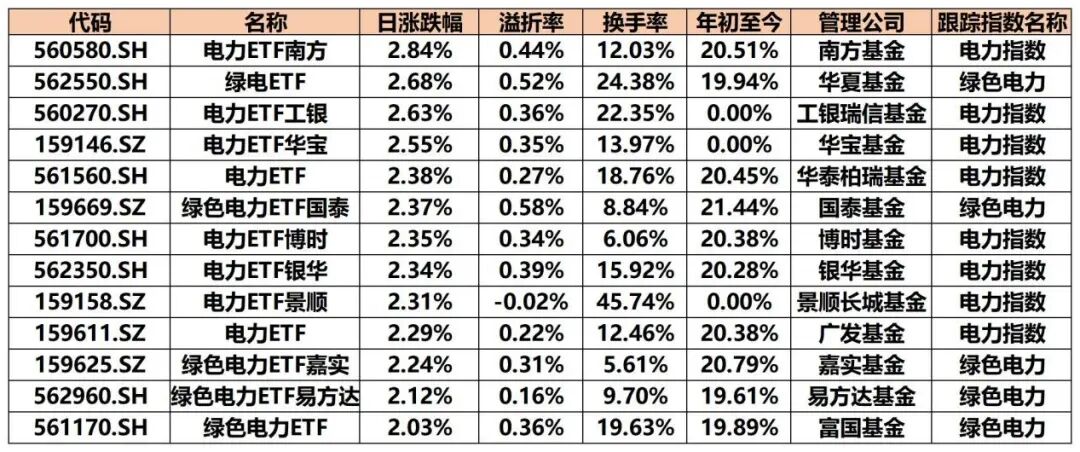 电力相关ETF集体走强