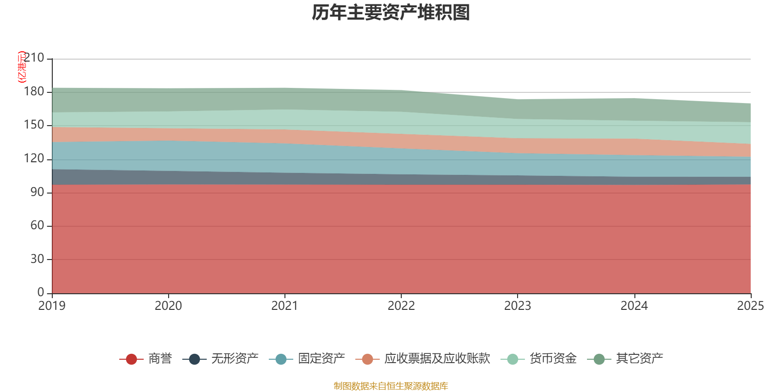 资产重大变化方面,截至2025年末,公司货币资金较上期末增加20.73%,占公司总资产比重上升2.22个百分点;商誉较上期末增加0.43%,占公司总资产比重上升1.78个百分点;应收票据及应收账款较上期末减少21.95%,占公司总资产比重下降1.67个百分点;存货较上期末减少73.87%,占公司总资产比重下降1.57个百分点。