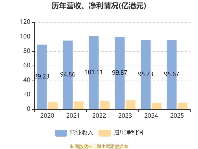 中证智能财讯中信国际电讯(01883)3月12日披露2025年度报告。报告期内,公司实现营业收入95.67亿港元,同比下降0.06%;归母净利润9.2亿港元,同比增长1.1%;据报告显示,中信国际电讯基本每股收益为0.249港元,平均净资产收益率为8.46%。公司2025年分配预案为:每股派息0.13港元。