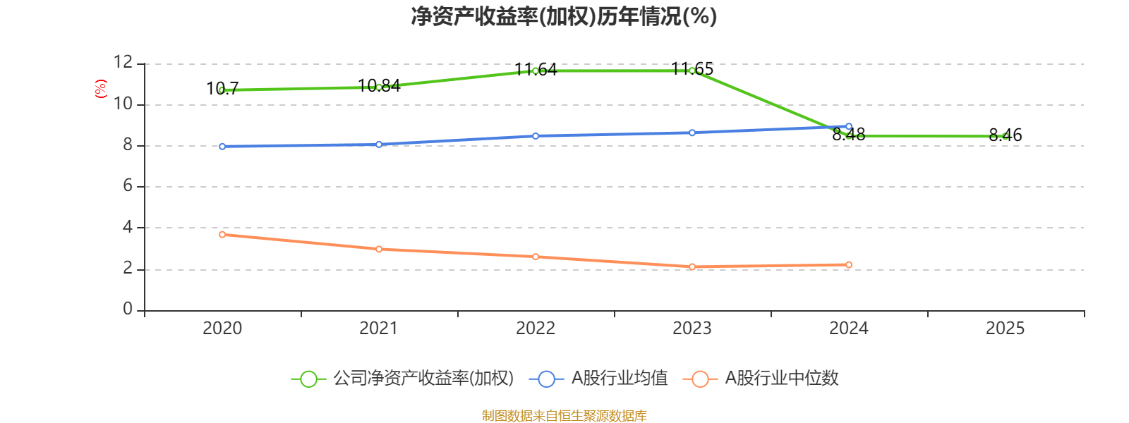 数据显示,2025年公司平均净资产收益率为8.46%,较上年同期下降0.02个百分点。