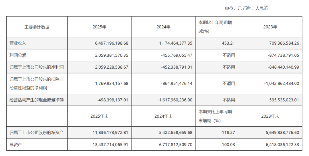 3月12日晚,寒武纪发布2025年年度报告。公告显示,公司实现营业收入64.97亿元,同比增长453.21%;归属于上市公司股东的净利润20.59亿元,首次实现全年利润同比扭亏为盈。