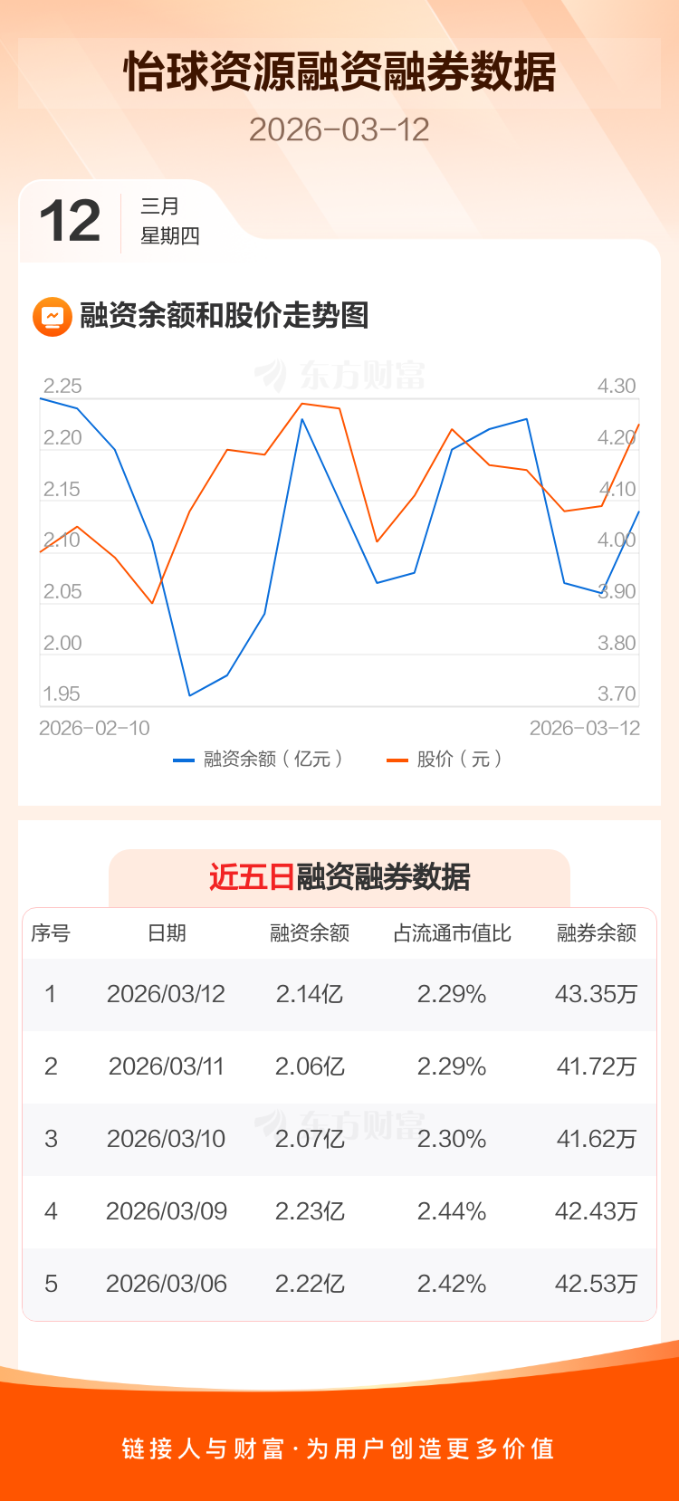 交易所最新数据显示,怡球资源于2026年3月12日获融资买入5484.80万元,融资偿还4681.80万元,当日融资净买入803万元。目前,该股融资余额2.14亿,占流通市值比例为2.29%。