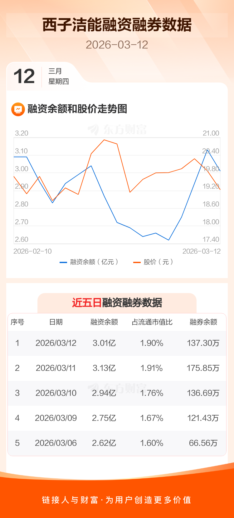 交易所最新数据显示,西子洁能于2026年3月12日获融资买入4487.29万元,融资偿还5605.76万元,当日融资净偿还1118.48万元。目前,该股融资余额3.01亿,占流通市值比例为1.90%。