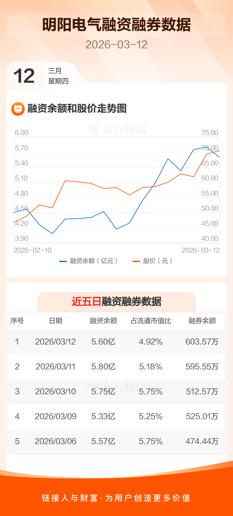 交易所最新数据显示,明阳电气于2026年3月12日获融资买入2.62亿元,融资偿还2.83亿元,当日融资净偿还2009.83万元。目前,该股融资余额5.60亿,占流通市值比例为4.92%。