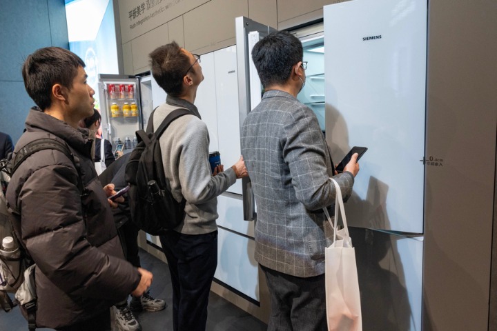 观众在参观装备了活氧科技源头根除细菌病毒专利的博世洗烘套机。