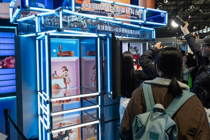 展会上展出的全球首款L4级多舱精储魔方冰箱。