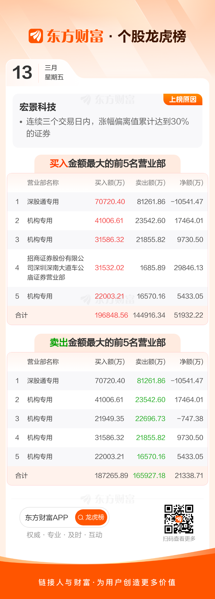 宏景科技(301396)龙虎榜数据(03-13)