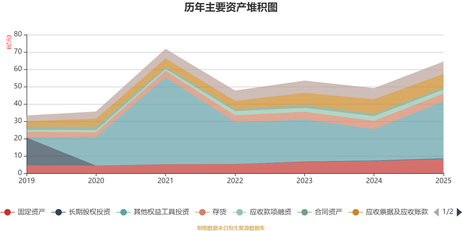资产重大变化方面,截至2025年末,公司其他权益工具投资较上年末增加81.48%,占公司总资产比重上升14.1个百分点;应收票据及应收账款较上年末减少5.33%,占公司总资产比重下降4.72个百分点;存货较上年末减少5.15%,占公司总资产比重下降2.7个百分点;应收款项融资较上年末减少17.52%,占公司总资产比重下降2.03个百分点。