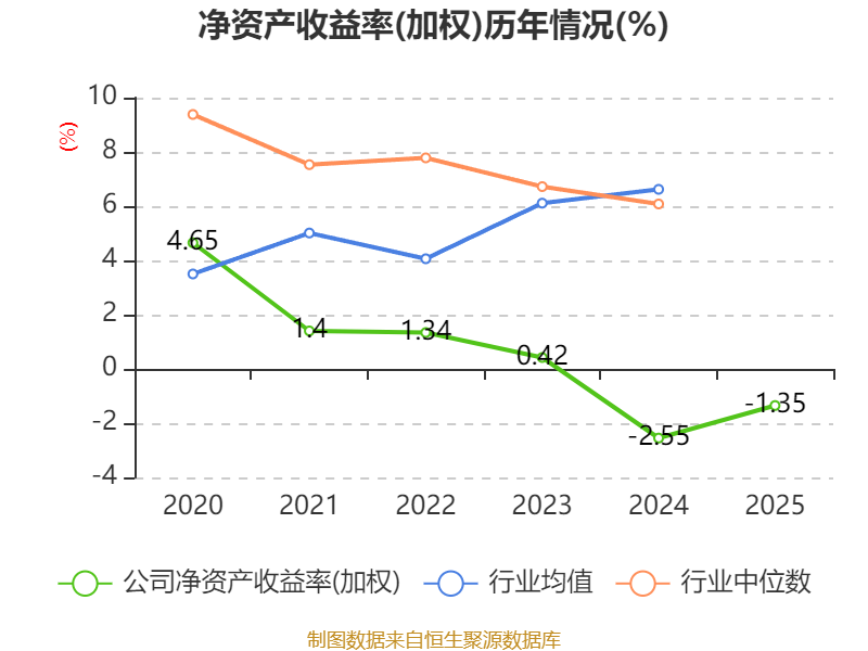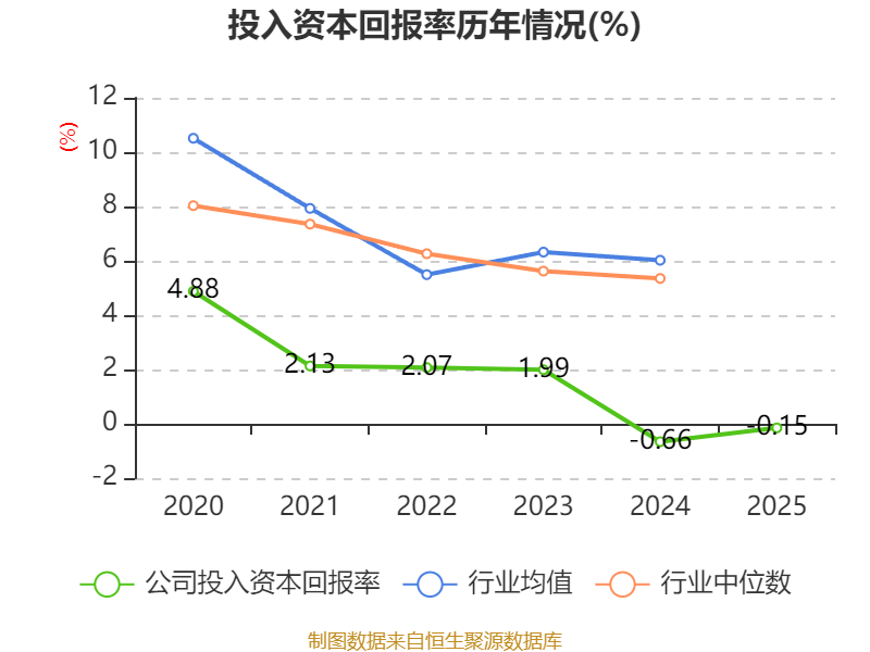 数据显示,2025年公司加权平均净资产收益率为-1.35%,较上年同期上升1.2个百分点。公司2025年投入资本回报率为-0.15%,较上年同期上升0.51个百分点。