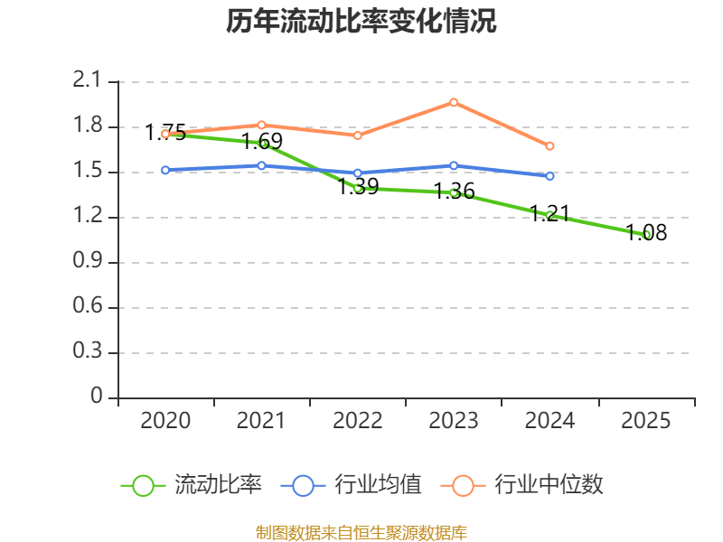 2025年,公司流动比率为1.08,速动比率为0.82。