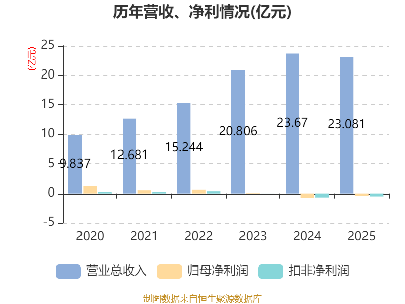 中证智能财讯成飞集成(002190)3月14日披露2025年年度报告。2025年,公司实现营业总收入23.08亿元,同比下降2.49%;归母净利润亏损4394.92万元,上年同期亏损7508.96万元;扣非净利润亏损5061.94万元,上年同期亏损6870.72万元;经营活动产生的现金流量净额为2.25亿元,同比增长89.66%;报告期内,成飞集成基本每股收益为-0.1225元,加权平均净资产收益率为-1.35%。