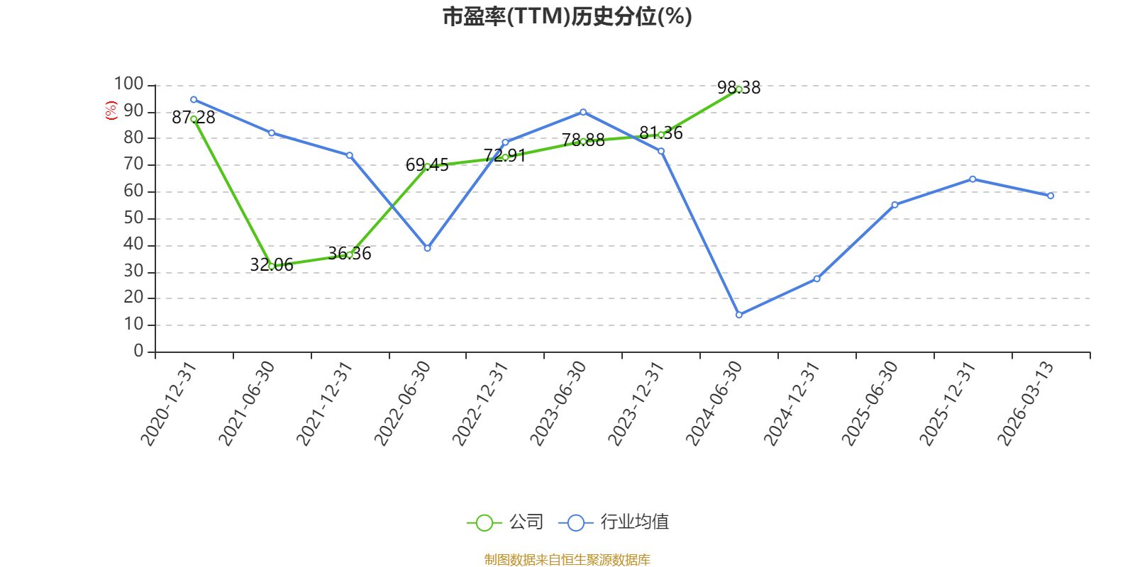 市盈率、市净率为负时,不显示当期分位数,会导致折线图中断。