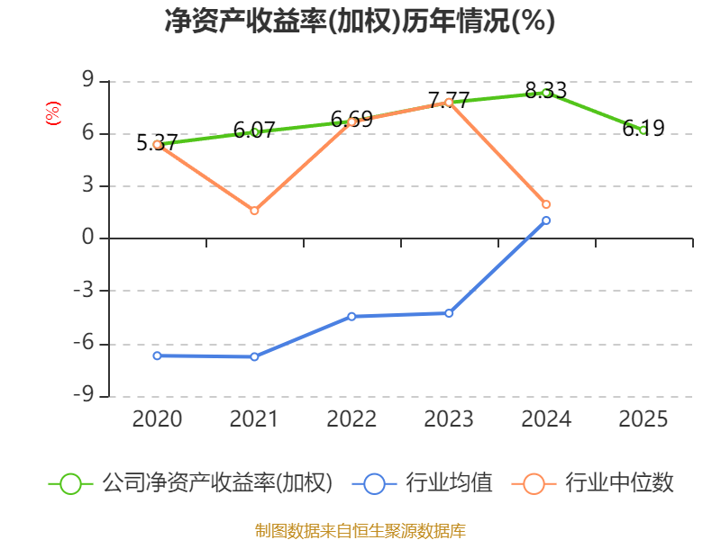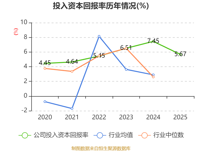 数据显示,2025年公司加权平均净资产收益率为6.19%,较上年同期下降2.14个百分点。公司2025年投入资本回报率为5.67%,较上年同期下降1.78个百分点。