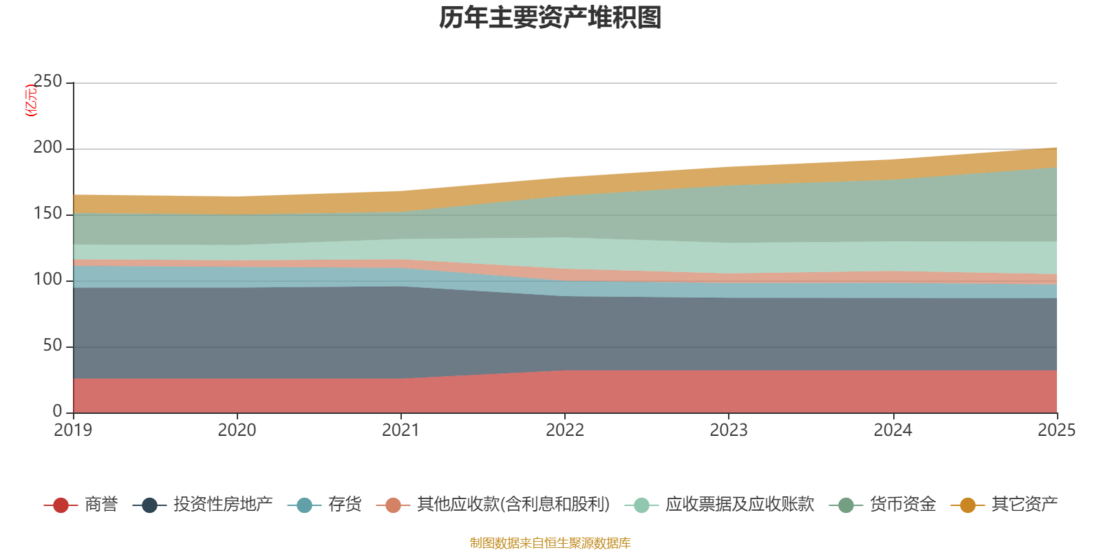 资产重大变化方面,截至2025年末,公司货币资金较上年末增加20.39%,占公司总资产比重上升3.64个百分点;投资性房地产较上年末减少0.36%,占公司总资产比重下降1.4个百分点;存货较上年末减少8.89%,占公司总资产比重下降0.78个百分点;其他应收款(含利息和股利)较上年末减少12.37%,占公司总资产比重下降0.76个百分点。
