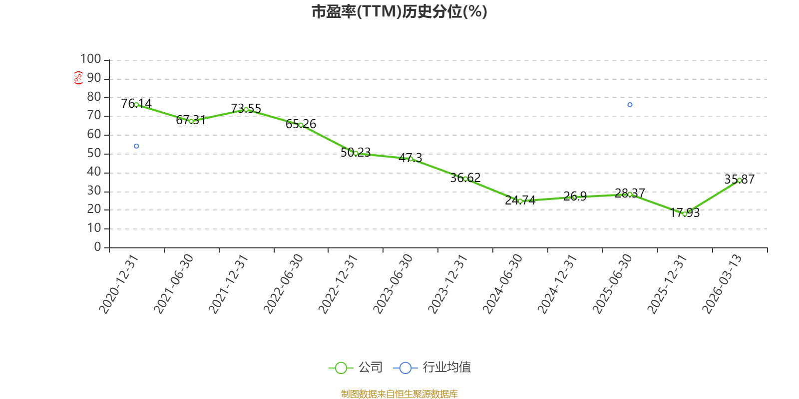 市盈率、市净率为负时,不显示当期分位数,会导致折线图中断。
