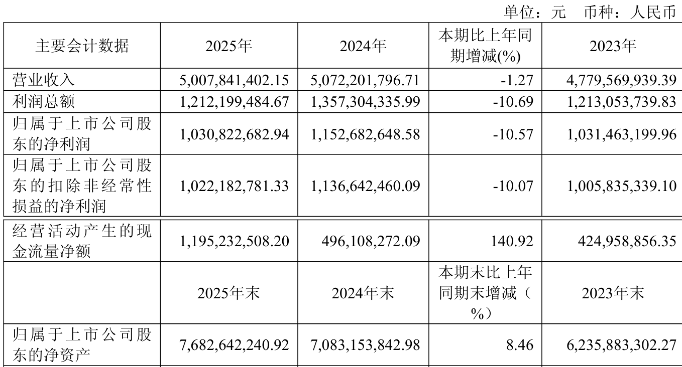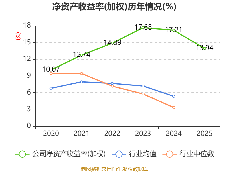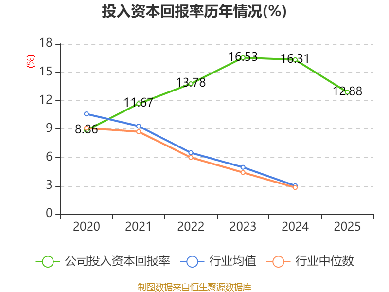 数据显示,2025年公司加权平均净资产收益率为13.94%,较上年同期下降3.27个百分点。公司2025年投入资本回报率为12.88%,较上年同期下降3.43个百分点。