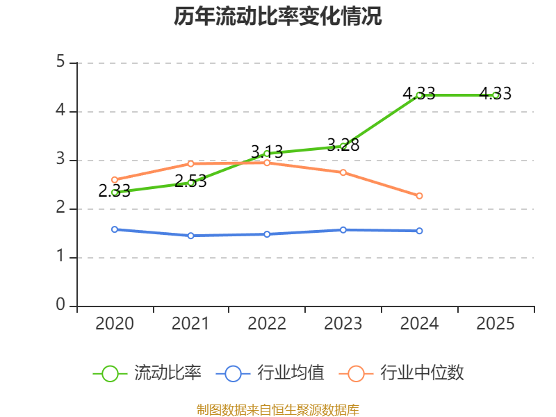 2025年,公司流动比率为4.33,速动比率为3.57。